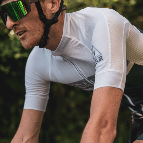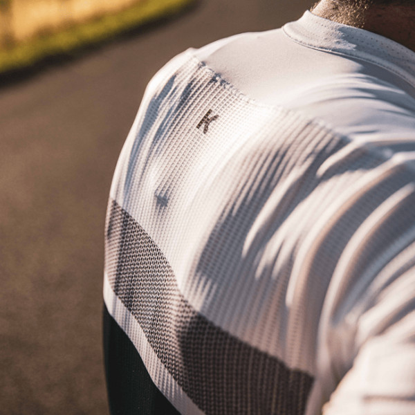 - Bande en silicone sur l'ourlet du bas du maillot pour que celui-ci reste en place lorsque vous pédalez